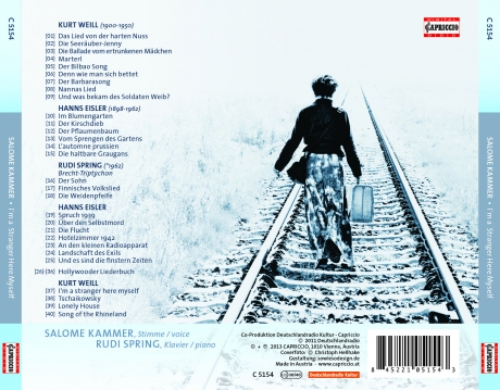 The composers Kurt Weill and Hanns Eisler and the poet Bert Brecht all experienced the fascinations and abysses of foreign lands and exile. What good fortune it must have been in Berlin in the 1920s when Weill and Brecht had such great success with their songs always telling of far-away countries and unknown things. At the time, they created an unmistakable style that has remained unique up to today with its mixture of popular music, supreme musical sophistication and political claims.