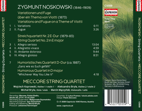 Zygmunt Noskowski, the influential Polish conductor and composer, is perhaps better remembered for his role as a teacher and mentor to later luminaries such as Karol Szymanowski and Mieczysław Karłowicz – and for his connection to Stanisław Moniuszko – than for his own compositions. Yet for much of the 19th century, he was Poland’s leading exponent of modern music and his works are central to the Polish tradition. After the Capriccio recordings of his Symphonies (CD C5509 and C5547) this album presents some of his string quartets and shows us again a veritable picture book of Polish romanticism.