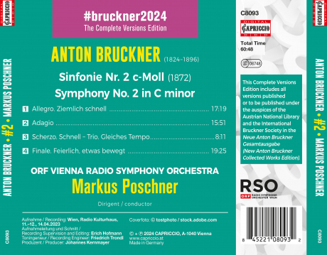 This final release of Capriccios Bruckner Symphonies - The Complete Versions Edition includes his very first and last Symphony. In March 1861, Anton Bruckner completed his counterpoint studies with the renowned teacher Simon Sechter who had also taught Schubert. His graduation signaled the end of an extended compositional hiatus. Bruckner’s F-Minor Symphony was conceived in the classical and early romantic tradition of Beethoven, Schubert, Mendelssohn and Schumann.
